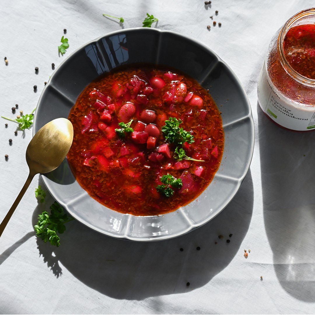 Nasza kuchnia jest w 100% roślinna, bez dodatku cukru, glutenu czy wzmacniaczy smaku. Przy fermentacji, kiszeniu, gotowaniu sięgamy po stare, dobre sposoby. Pracujemy w ramach tradycyjnej, lokalnej manufaktury.